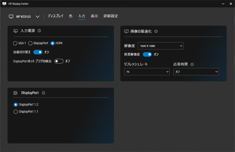 HP Display Center などのモニターツールを使用して、モニター(ディスプレイ)側の輝度、コントラスト、応答速度、入力切替などの設定が変更できるのは非常に便利ですよね。 通常であれば、モニター側の設定はモニターのメニューボタンからオンスクリーンディスプレイ(OSD)を呼び出して行います。 しかしモニターによってはメニューボタンの操作がし辛いものもあります。また、ゲームごとにコントラストや応答速度、黒色ストレッチをいちいち調整するのは面倒です。